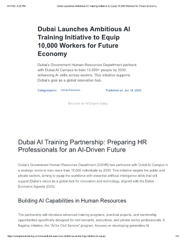6/17/25, 4:24 PM Dubai Launches Ambitious AI Training Initiative to Equip 10,000 Workers for Future Economy