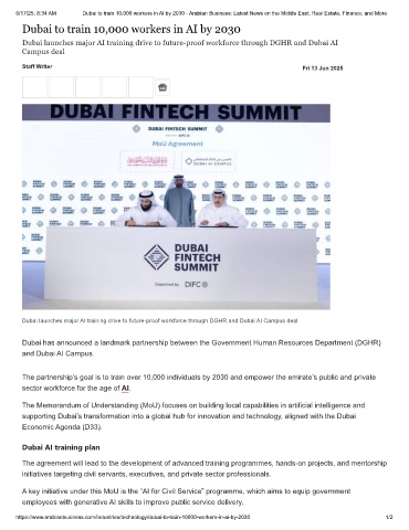6/17/25, 8:34 AM Dubai to train 10,000 workers in AI by 2030 - Arabian Business: Latest News on the Middle East, Real Estate, Finance, and More