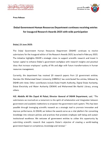 H.E.  Abdulla  Ali  Bin  Zayed  Al  Falasi,  Director  General  of  DGHR  Department,  said,  “The