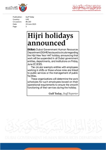 Publication: Gulf Today Country: UAE Circulation: 49,500 Date: 19 June 2025 Page: 3