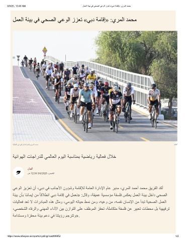 6/9/25, 10:46 AM لﻣﻌﻟا ﺔﺋﯾﺑ ﻲﻓ ﻲﺣﺻﻟا ﻲﻋوﻟا ززﻌﺗ «ﻲﺑد ﺔﻣﺎﻗإ» :يرﻣﻟا دﻣﺣﻣ