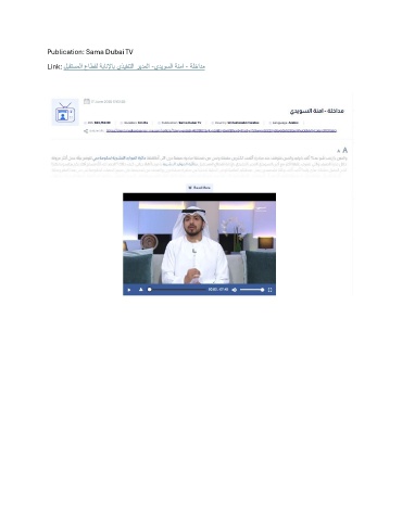 Publication: Sama Dubai TV Link: لبقتسملا عاطقل ةبانلإاب يذيفنتلا ريدملا يديوسلا ةنما ةلخادم - -