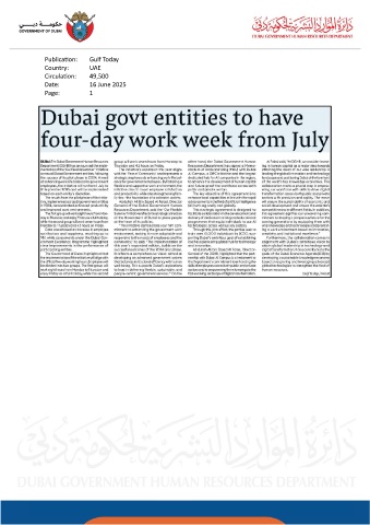 Publication: Gulf Today Country: UAE Circulation: 49,500 Date: 16 June 2025 Page: 1