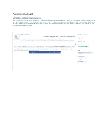 Publication: alarabiya99 Link: https://client.mediaobserver- me.com/article/?slng=en&id=46110839&qk=pZuYCr0ZGSimS8D76KcjlnTSnTeVryOdIB9tI70Y0zqCw DiqRm%2Bf%2BYhuo8s1qAk8%2Bt1K3qhMEmcpQXkKGuBf%2FCEN3LG4%2ByaKYjtP3Qx2FlFRp7 vv8PF6wauTx6waBqVs