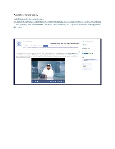 Publication: Sama Dubai TV Link: https://client.mediaobserver- me.com/article/?slng=en&id=46107967&qk=UpV4ta28LjmXYKiAD6swThtIxIo3s1OPFK3rULpFz4Ojp 7CrJoQ1oeuRtg5WnnVAMaX8YACOPcub2lE2tbf%2BxASsQlzbCvugp%2F3nsLurahaPRXwfgyk8cIV3 d6zLpahl