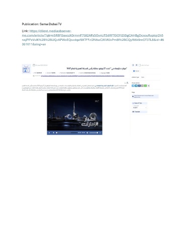 Publication: Sama Dubai TV Link: https://client.mediaobserver- me.com/article/?qk=n5R8FGaxczX0rmmF7GI2APz5OvnUT34RFTGOYIZiEigCAHBgDcxouRoptqr2h5 najPfFsVvlK%2B%2BUQzAPWoEQozdqaf9XTFFzI2N6wCJKVKJxPm8l%2BCQyf66k9mOT3TL8&id=46 351611&slng=en