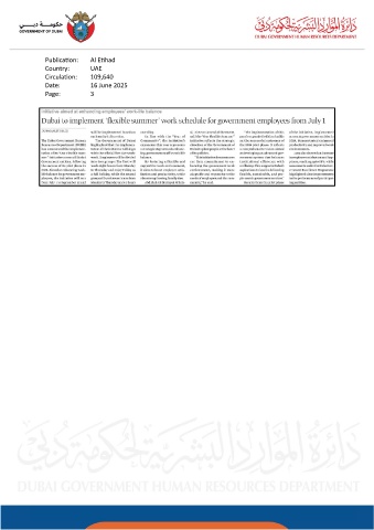 Publication: Al Etihad Country: UAE Circulation: 109,640 Date: 16 June 2025 Page: 3