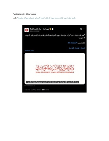 Publication: X - Oloumaldar Link: " ةيموكحلا تاهجلا يف ممهلا باحصلأ جمادلا فيظوتلا دوهج ةلصاوم دكؤت "يبد ةموكح ةيرشب