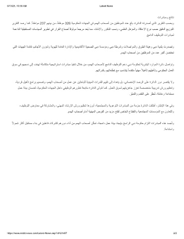 رﯾرﻘﺗﻟا دﺻر ﺎﻣﻛ . ً ﺎﻧطاوﻣ 237 مﮭﻧﯾﺑ نﻣ ، ً ﺎﻔظوﻣ 326 ﺔﯾﻣوﻛﺣﻟا تﺎﮭﺟﻟا ﻲﻓ مﻣﮭﻟا بﺎﺣﺻأ نﻣ نﯾﻔظوﻣﻟا ددﻋ ﻎﻠﺑ ،ةرﺋادﻟا ﮫﺗردﺻأ يذﻟا رﯾرﻘﺗﻟا بﺳﺣﺑو