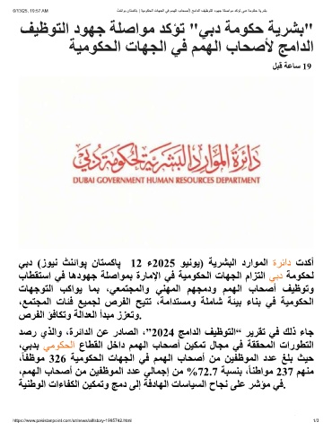 ﻒﯿظﻮﺘﻟا دﻮﮭﺟ ﺔﻠﺻاﻮﻣ ﺪﻛﺆﺗ "ﻲﺑد ﺔﻣﻮﻜﺣ ﺔﯾﺮﺸﺑ"