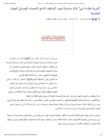 6/13/25, 10:57 AM تﻧﯾوﺑ ودرأ - ﺔﯾﻣوﻛﺣﻟا تﺎﮭﺟﻟا ﻲﻓ مﻣﮭﻟا بﺎﺣﺻﻷ ﺞﻣادﻟا فﯾظوﺗﻟا دوﮭﺟ ﺔﻠﺻاوﻣ دﻛؤﺗ ﻲﺑد ﺔﻣوﻛﺣ ﺔﯾرﺷﺑ