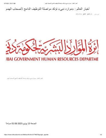 6/13/25, 10:57 AM مﻣﮭﻟا بﺎﺣﺻﻷ ﺞﻣادﻟا فﯾظوﺗﻟا ﺔﻠﺻاوﻣ دﻛؤﺗ «ﻲﺑد دراوﻣ» : مﻟﺎﻌﻟا رﺎﺑﺧأ