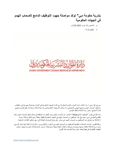 ممهلا باحصلأ جمادلا فيظوتلا دوهج ةلصاوم دكؤت "يبد ةموكح ةيرشب