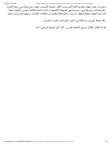 6/13/25, 10:55 AM ﺔﯾﻣوﻛﺣﻟا تﺎﮭﺟﻟا ﻲﻓ مﻣﮭﻟا بﺎﺣﺻﻷ ﺞﻣادﻟا فﯾظوﺗﻟا دوﮭﺟ ﺔﻠﺻاوﻣ دﻛؤﺗ «ﻲﺑد ﺔﻣوﻛﺣ ﺔﯾرﺷﺑ» | ﺔﯾﺗارﺎﻣﻹا دﺎﺣﺗﻻا ﺔﻔﯾﺣﺻ