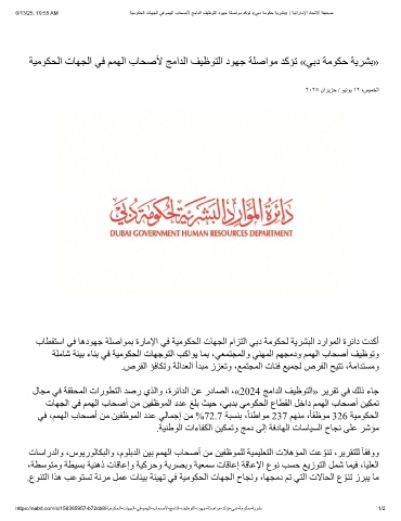 6/13/25, 10:55 AM ﺔﯾﻣوﻛﺣﻟا تﺎﮭﺟﻟا ﻲﻓ مﻣﮭﻟا بﺎﺣﺻﻷ ﺞﻣادﻟا فﯾظوﺗﻟا دوﮭﺟ ﺔﻠﺻاوﻣ دﻛؤﺗ «ﻲﺑد ﺔﻣوﻛﺣ ﺔﯾرﺷﺑ» | ﺔﯾﺗارﺎﻣﻹا دﺎﺣﺗﻻا ﺔﻔﯾﺣﺻ