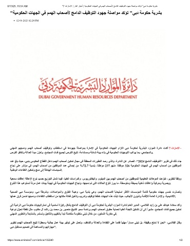 6/13/25, 10:54 AM "7 تارﺎﻣﻻا | رادﻟا رﺎﺑﺧأ | ﺔﯾﻣوﻛﺣﻟا تﺎﮭﺟﻟا ﻲﻓ مﻣﮭﻟا بﺎﺣﺻﻷ ﺞﻣادﻟا فﯾظوﺗﻟا دوﮭﺟ ﺔﻠﺻاوﻣ دﻛؤﺗ "ﻲﺑد ﺔﻣوﻛﺣ ﺔﯾرﺷﺑ