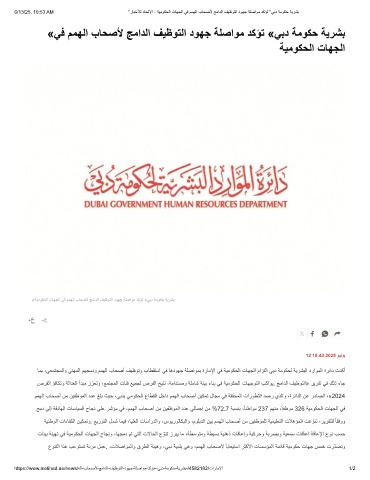 6/13/25, 10:53 AM "رﺎﺑﺧﻸﻟ دﺎﺣﺗﻻا - ﺔﯾﻣوﻛﺣﻟا تﺎﮭﺟﻟا ﻲﻓ مﻣﮭﻟا بﺎﺣﺻﻷ ﺞﻣادﻟا فﯾظوﺗﻟا دوﮭﺟ ﺔﻠﺻاوﻣ دﻛؤﺗ "ﻲﺑد ﺔﻣوﻛﺣ ﺔﯾرﺷﺑ