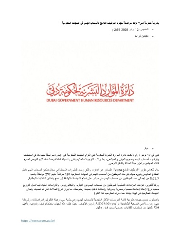 باطقتسا يف اهدوهج ةلصاومب ةراملإا يف ةيموكحلا تاهجلا مازتلا يبد ةموكحل ةيرشبلا دراوملا ةرئاد تدكأ / ماو / وينوي 12 يف يبد