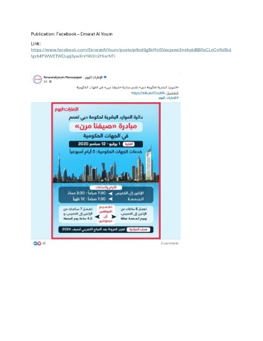 Publication: Facebook – Emarat Al Youm Link: https://www.facebook.com/EmaratAlYoum/posts/pfbid0g8kMnSVaejaaw3mihpbBBRsCLzCnRdBid fgx64FWWETWDugj3ywXnHW2n2HiarNTl