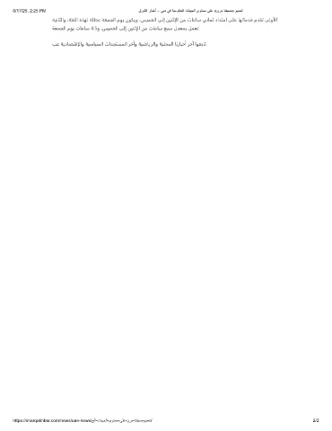 ﺔﻌﻤﺠﻟا مﻮﻳ تﺎﻋﺎﺳ 4.5و ،ﺲﻴﻤﺨﻟا ﻰﻟإ ﻦﻴﻨﺛإلا ﻦﻣ تﺎﻋﺎﺳ ﻊﺒﺳ لﺪﻌﻤﺑ ﻞﻤﻌﺗ.