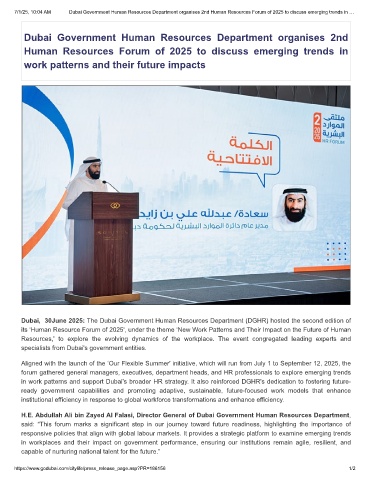 7/1/25, 10:04 AM Dubai Government Human Resources Department organises 2nd Human Resources Forum of 2025 to discuss emerging trends in …
