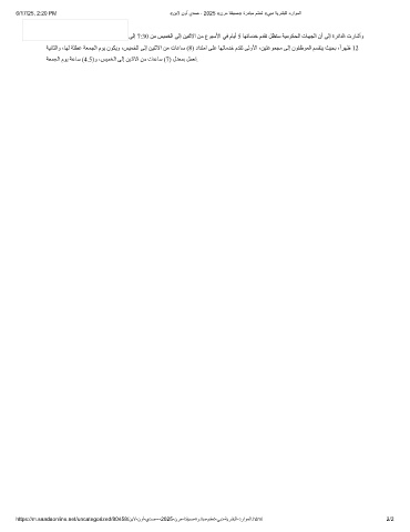 ﺔﯿﻧﺎﺜﻟاو ،ﺎﮭﻟ ﺔﻠﻄﻋ ﺔﻌﻤﺠﻟا مﻮﯾ نﻮﻜﯾو ،ﺲﯿﻤﺨﻟا ﻰﻟإ ﻦﯿﻨﺛﻻا ﻦﻣ تﺎﻋﺎﺳ (8) داﺪﺘﻣا ﻰﻠﻋ ﺎﮭﺗﺎﻣﺪﺧ مﺪﻘﺗ ﻰﻟوﻷا ،ﻦﯿﺘﻋﻮﻤﺠﻣ ﻰﻟإ نﻮﻔظﻮﻤﻟا ﻢﺴﻘﻨﯾ ﺚﯿﺤﺑ ،ًاﺮﮭظ 12
