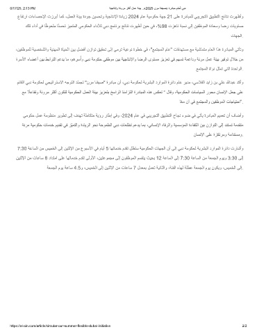عﺎﻔﺗرا تاءﺎﺻﺣﻹا تزرﺑأ ﺎﻣﻛ ،لﻣﻌﻟا ﺔﺋﯾﺑ ةدوﺟ نﯾﺳﺣﺗو ﺔﯾﺟﺎﺗﻧﻹا ةدﺎﯾز 2024 مﺎﻋ ﺔﯾﻣوﻛﺣ ﺔﮭﺟ 21 ﻰﻠﻋ ةردﺎﺑﻣﻠﻟ ﻲﺑﯾرﺟﺗﻟا ﻖﯾﺑطﺗﻟا ﺞﺋﺎﺗﻧ ترﮭظأو