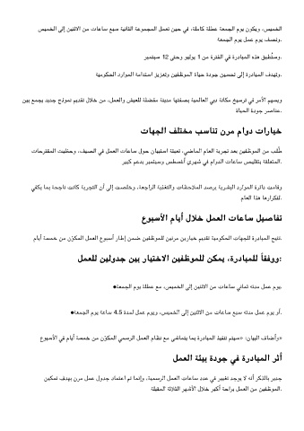 •ﺔﻌﻤﺠﻟا مﻮﻳ ﺔﻠﻄﻋ ﻊﻣ ،ﺲﻴﻤﺨﻟا ﻟإ ﻦﻴﻨﺛﻻا ﻦﻣ تﺎﻋﺎﺳ ﻧﺎﻤﺛ ﻪﺗﺪﻣ ﻞﻤﻋ مﻮﻳ.