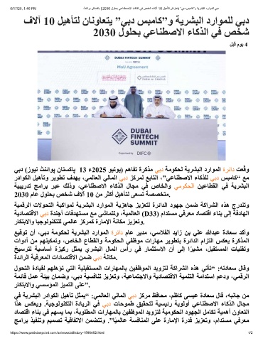 6/17/25, 1:46 PM ٹﻧﺋاوﺑ نﺎﺗﺳﮐﺎﺑ | 2030 لوﻠﺣﺑ ﻲﻋﺎﻧطﺻﻻا ءﺎﻛذﻟا ﻲﻓ صﺧﺷ فﻻآ 10 لﯾھﺄﺗﻟ نﺎﻧوﺎﻌﺗﯾ ”ﻲﺑد سﺑﻣﺎﻛ”و ﺔﯾرﺷﺑﻟا دراوﻣﻠﻟ ﻲﺑد
