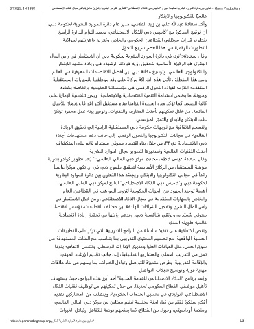 6/17/25, 1:41 PM ﻲﻋﺎﻧطﺻﻻا ءﺎﻛذﻟا لﺎﺟﻣ ﻲﻓ ﺎﮭﺗﯾزھﺎﺟ زﯾزﻌﺗو ﺔﯾرﺷﺑﻟا رداوﻛﻟا رﯾوطﺗﻟ ”ﻲﻋﺎﻧطﺻﻻا ءﺎﻛذﻠﻟ ﻲﺑد سﭘﻣﺎﻛ“ و ﻲﺑد ﺔﻣوﻛﺣﻟ ﺔﯾرﺷﺑﻟا دراوﻣﻟا ةرﺋاد نﯾﺑ نوﺎﻌﺗ – Open Production