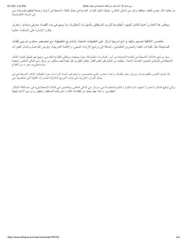 ﻲﺑد تﺎﺣوﻣط ﻖﯾﻘﺣﺗﻟ ﺔﯾﺳﯾﺋر ﺔﯾوﻟوأ ﻲﻋﺎﻧطﺻﻻا ءﺎﻛذﻟا لﺎﺟﻣ ﻲﻓ ﺔﯾرﺷﺑﻟا رداوﻛﻟا لﯾھﺄﺗ لﺛﻣﯾ» :ﻲﻣﻟﺎﻌﻟا ﻲﻟﺎﻣﻟا ﻲﺑد زﻛرﻣ ظﻓﺎﺣﻣ ،مظﺎﻛ ﻰﺳﯾﻋ لﺎﻗ ،ﮫﺑﻧﺎﺟ نﻣ