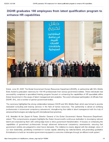 Dubai, June 25, 2025: The Dubai Government Human Resources Department (DGHR), in partnership with SHL Middle