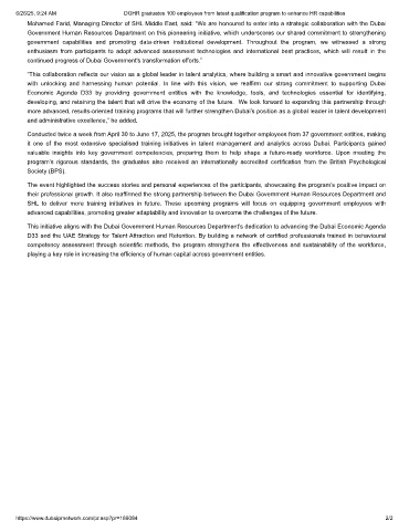 Mohamed Farid, Managing Director of SHL Middle East, said: “We are honoured to enter into a strategic collaboration with the Dubai