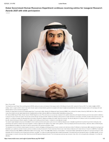 dedicated page for research submissions titled ‘Dubai Government HR Department Research Awards.’ The initial awareness workshop was conducted in May 2025, which witnessed active participation of more than 350