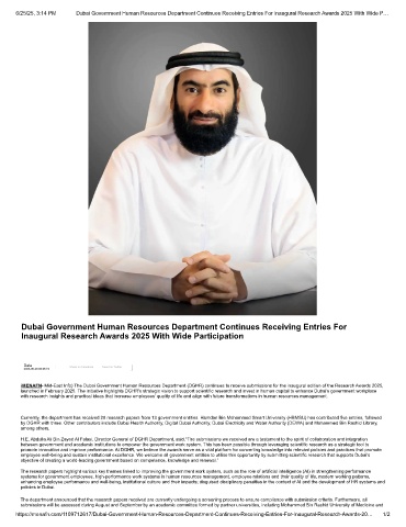 6/25/25, 3:14 PM Dubai Government Human Resources Department Continues Receiving Entries For Inaugural Research Awards 2025 With Wide P…