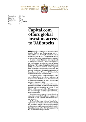 Publication: Gulf Today Country: UAE Circulation: 49,500 Date: 15 April 2025 Page: 16