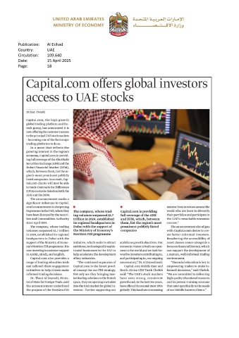 Publication: Al Etihad Country: UAE Circulation: 109,640 Date: 15 April 2025 Page: 18