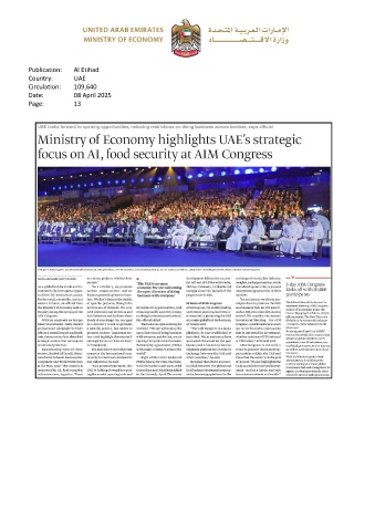 Publication: Al Etihad Country: UAE Circulation: 109,640 Date: 08 April 2025 Page: 13