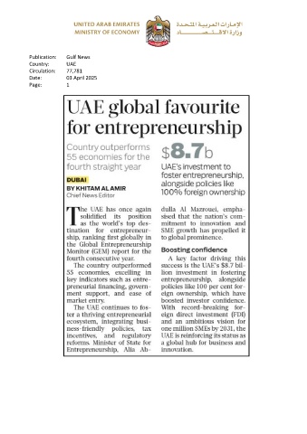 Publication: Gulf News Country: UAE Circulation: 77,781 Date: 03 April 2025 Page: 1
