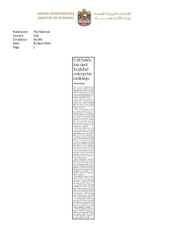 Publication: The National Country: UAE Circulation: 60,000 Date: 03 April 2025 Page: 1