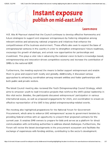 4/28/25, 3:22 PM UAE Council for Entrepreneurship holds second meeting highlighting its plans to enhance the UAE’s business environment and sup…