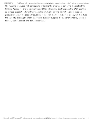 4/28/25, 3:22 PM UAE Council for Entrepreneurship holds second meeting highlighting its plans to enhance the UAE’s business environment and sup…