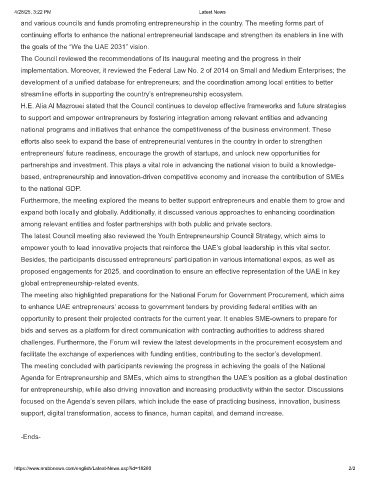 Agenda for Entrepreneurship and SMEs, which aims to strengthen the UAE’s position as a global destination