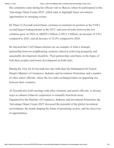 https://www.bignewsnetwork.com/news/278189752/oman-uae-boost-bilateral-trade-investment-ties-at-advantage-oman-forum 2/2