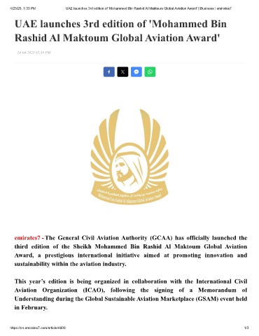 4/25/25, 1:33 PM UAE launches 3rd edition of 'Mohammed Bin Rashid Al Maktoum Global Aviation Award' | Business | emirates7