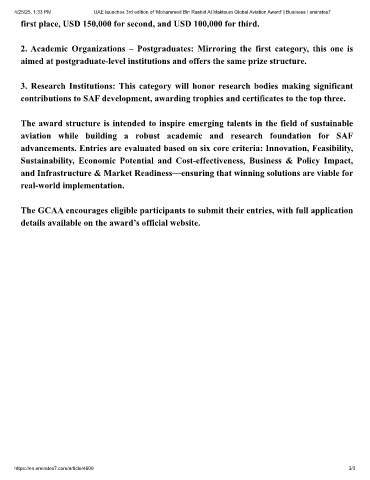 4/25/25, 1:33 PM UAE launches 3rd edition of 'Mohammed Bin Rashid Al Maktoum Global Aviation Award' | Business | emirates7