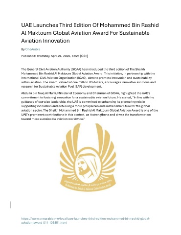 aviation sector. The Sheikh Mohammed Bin Rashid Al Maktoum Global Aviation Award is one of the