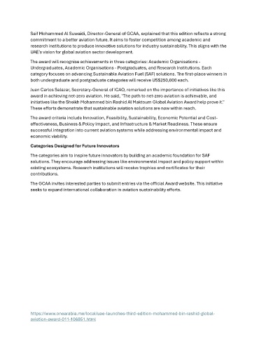 The categories aim to inspire future innovators by building an academic foundation for SAF