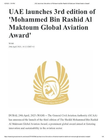 4/25/25, 1:34 PM UAE launches 3rd edition of 'Mohammed Bin Rashid Al Maktoum Global Aviation Award'