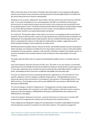 for the global aviation sector. The Sheikh Mohammed Bin Rashid Al Maktoum Global Aviation Award
